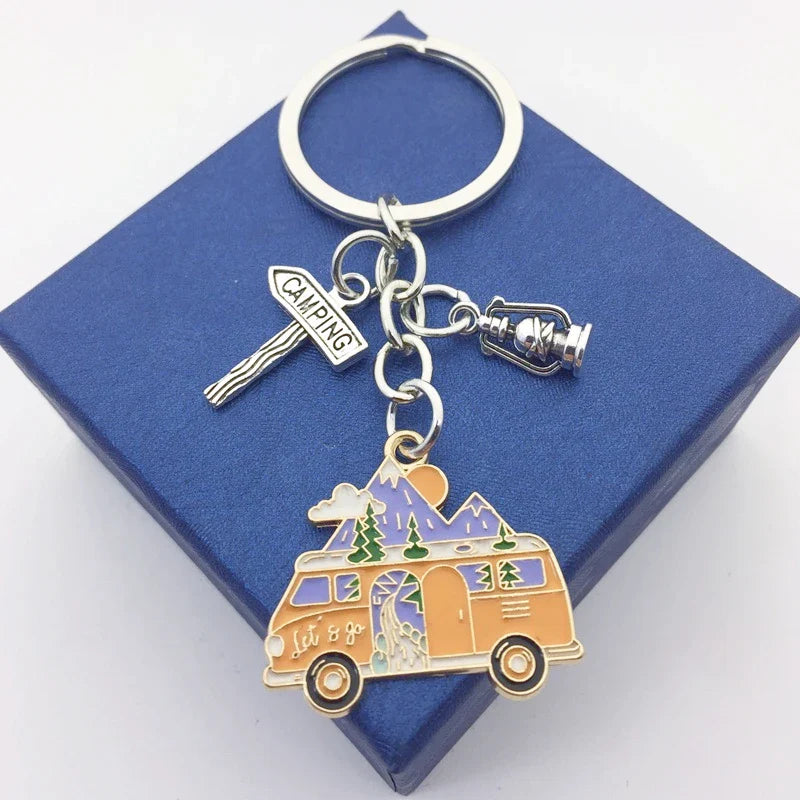 Detailed Craftsmanship: The intricate detailing of the kerosene lamp and camper bus showcases exceptional craftsmanship, making it not just a keychain but a miniature piece of art.